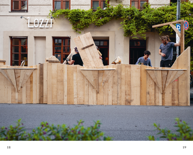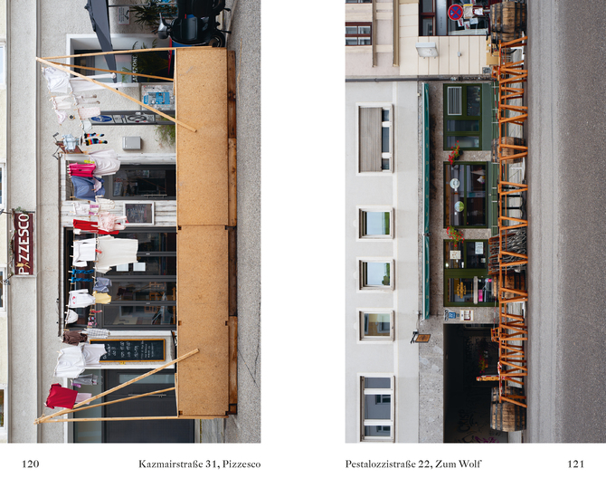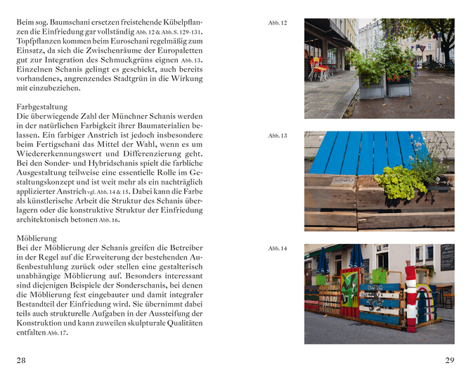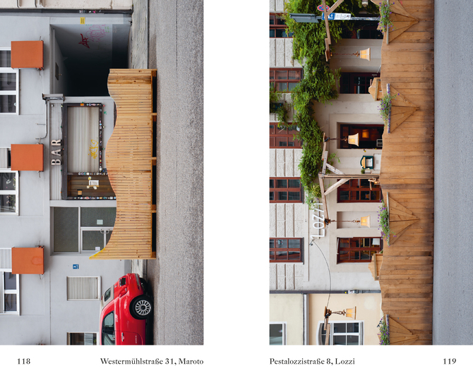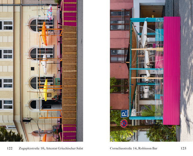 "Im Sommer 2020 wurde München mit Schanigärten botanisiert. Im Zuge der COVID-19-Pandemie wurde Improvisation ein legitimes Mittel und Architektur ohne Architekten kehrte in die Stadt zurück. Für „Schanitown“ driftete der Architekt Alexander Fthenakis mit seiner Kamera durch die neuen Landschaften und fotografierte die fliegenden Bauten. Die repräsentative Auswahl gliedert und beschreibt er typologisch. Der Stadtplaner Jonas König (TU Berlin) steuert einen Essay über das Phänomen und seine Temporalitäten bei. Dabei wandert er vom Schah zum Schani und zurück, und rückt das Lokale in übergeordnete Zusammenhänge. Beiden Autoren merkt man bei aller Sachlichkeit die Freude am Gegenstand an und ein humorvoller Grundton begleitet das Buch."