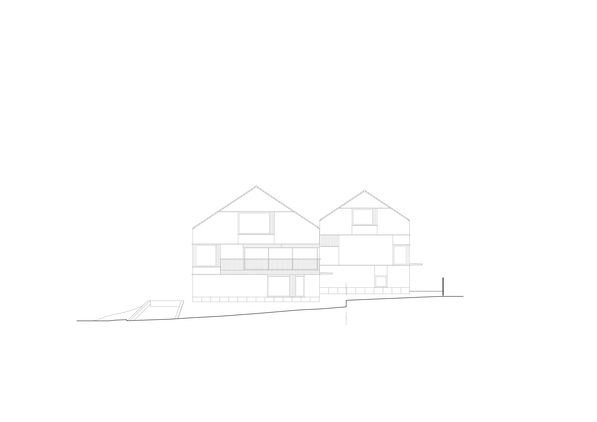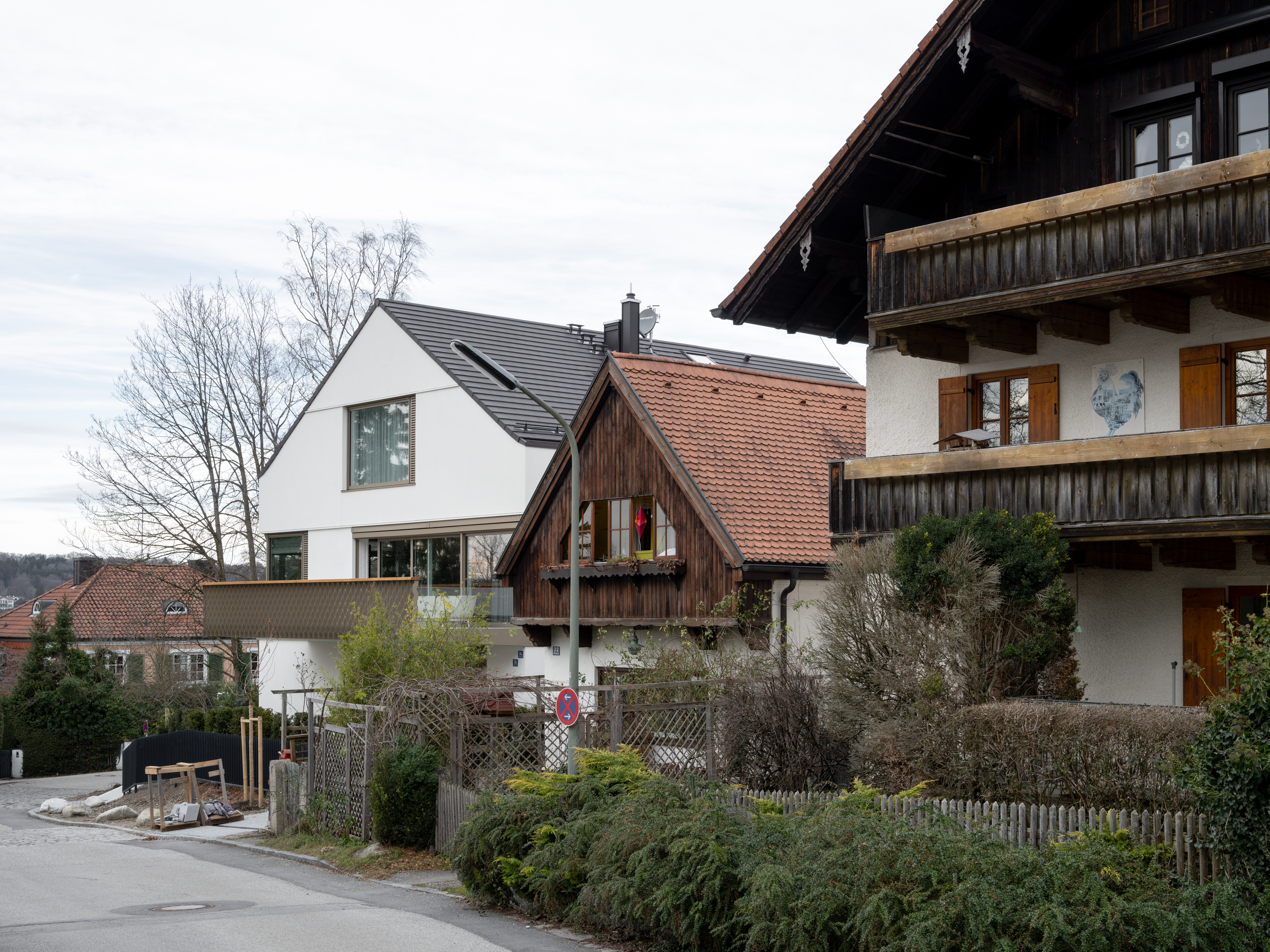 Two small residential buildings with five genereous appartments in the immediate surroundings of the summer palace of the former bavarian king Ludwig II. The buildings are constructed in a mixed structure in whitewashed brick and concrete.