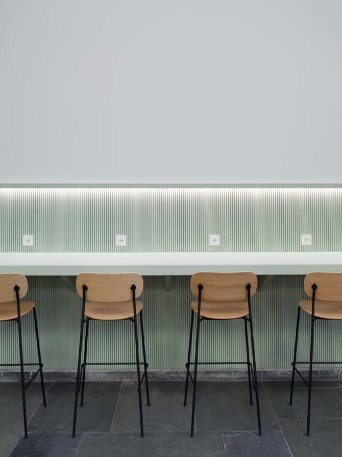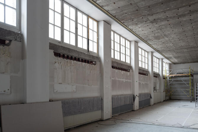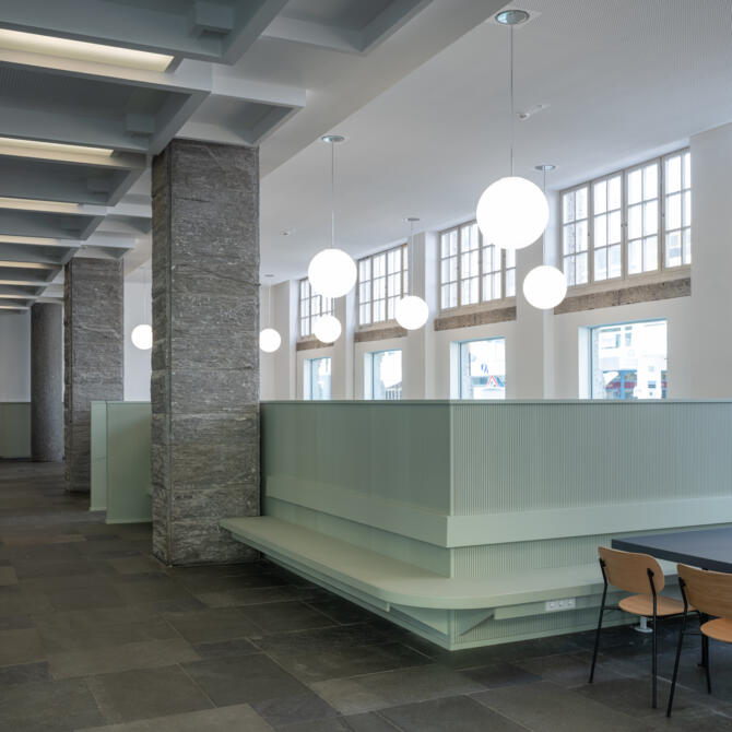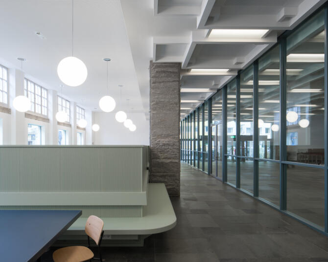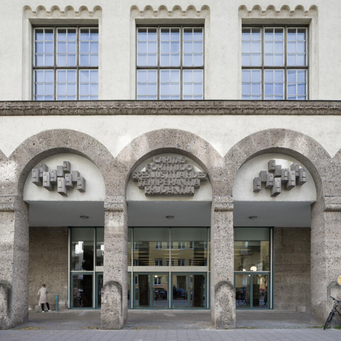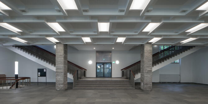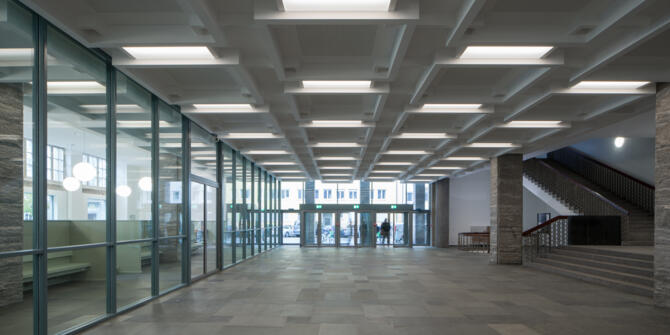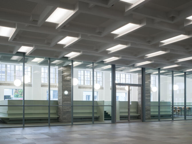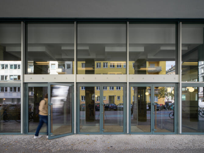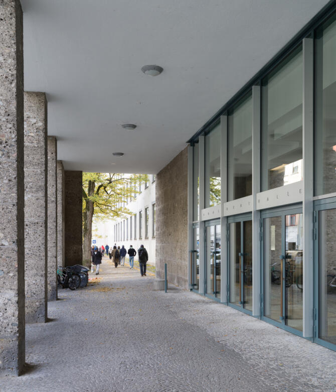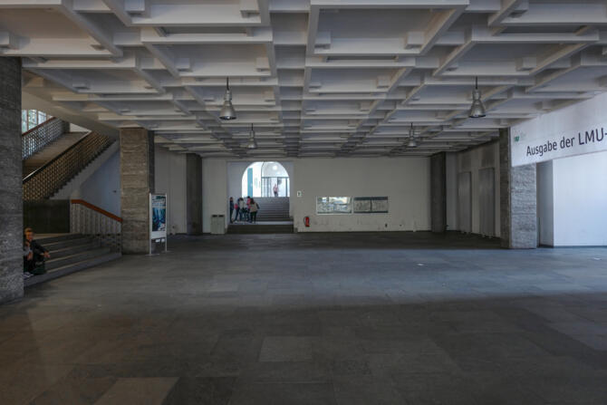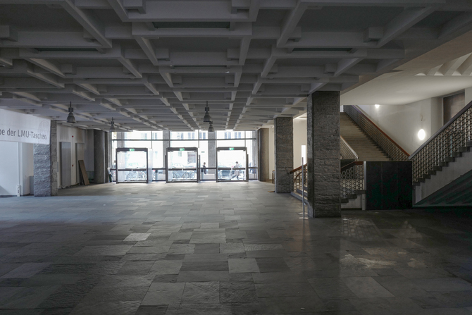Die Adalberthalle ist die nordwestliche Eingangshalle des Hauptgebäudes der Münchner Ludwig-Maximilians-Universität. Sie ist ein verstecktes Juwel im Gebäudekomplex des Hauptgebäudes der Universität. Der Gebäudetrakt in dem die Halle liegt, wurde vollständig im Zuge des Wiederaufbaus der Universität nach dem zweiten Weltkrieg errichtet. Dies sieht man ihm nach außen zwar nicht an, die Architektur der Halle selbst ist jedoch geprägt von einer Vielzahl aufwändiger Details der 1950er Jahre. Durch eine Umgestaltung soll die Halle räumlich und funktional aufgewertet werden. Unter Anderem soll ein abgetrennter Bereich Arbeitsplätze und Aufenthaltsräume für Studierende schaffen. Die Eingriffe tragen der spezifischen, hybriden Architektur des Wiederaufbaus Rechnung.